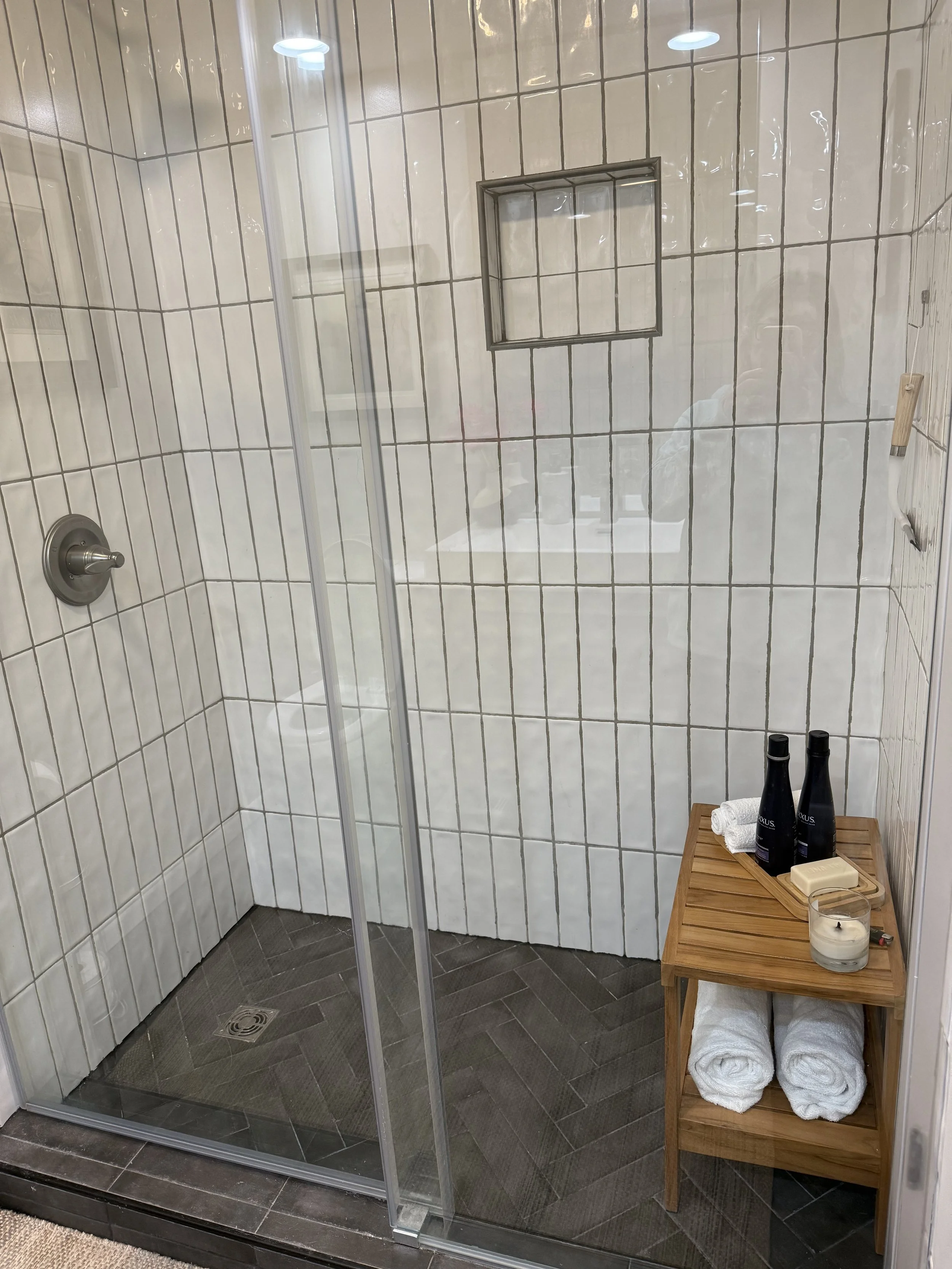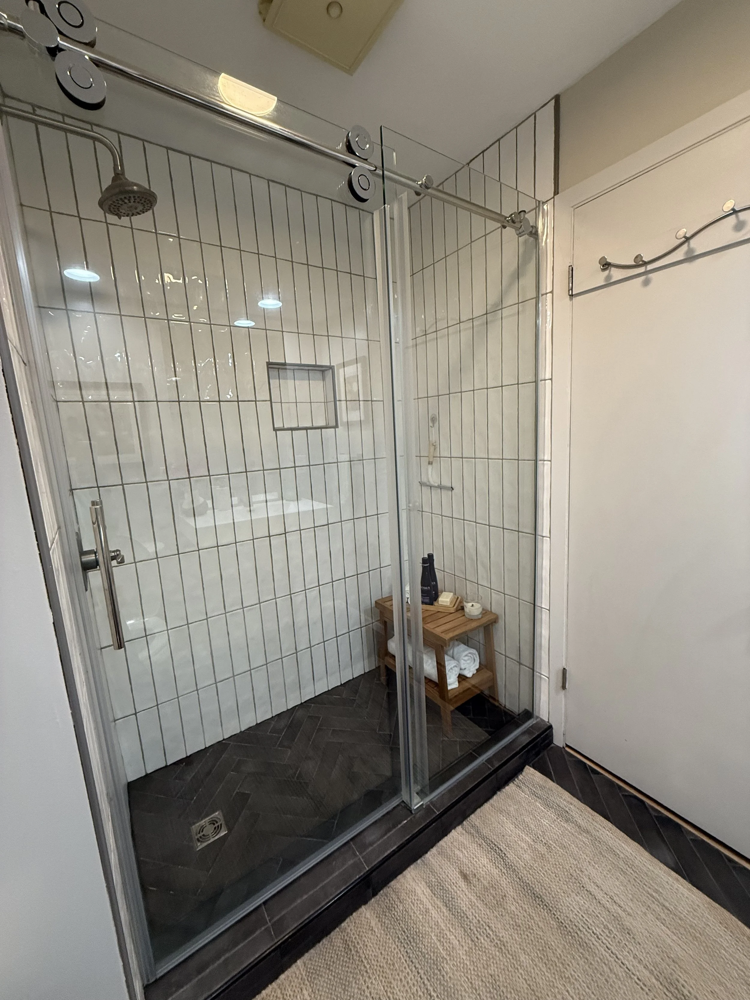 We started by stripping away the layers of the past, creating a clean foundation for timeless design. Soft, neutral tones replaced the dated palette, instantly opening up the room. A frameless glass shower, modern soaking tub, and updated vanity brought in both elegance and functionality, while textured tile and brushed finishes added warmth and depth.