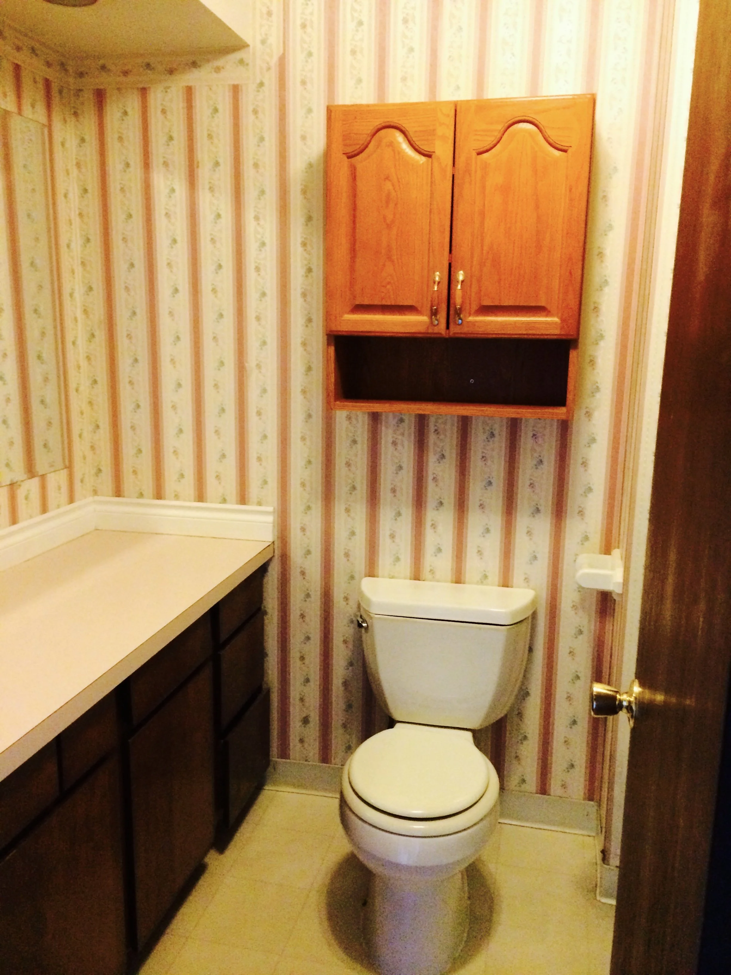 When this couple found their forever neighborhood, they knew they’d have to see past the surface to make it home. The bathroom — complete with a powder-blue bathtub, pink floral wallpaper, and mismatched fixtures — was a relic of another era. But beneath the outdated details, I saw potential: a generous footprint, great natural light, and a space that could become a serene retreat without exceeding their budget.