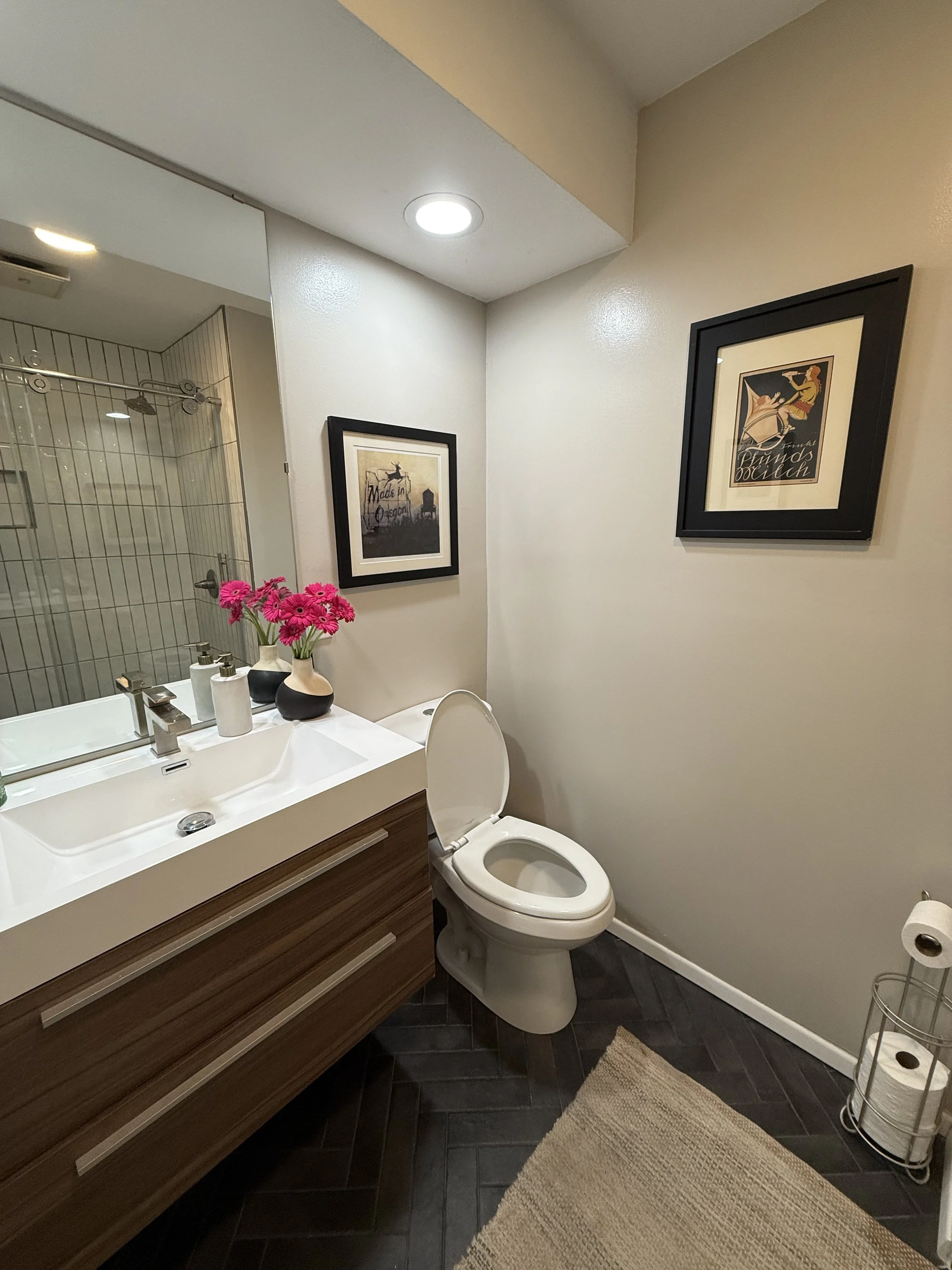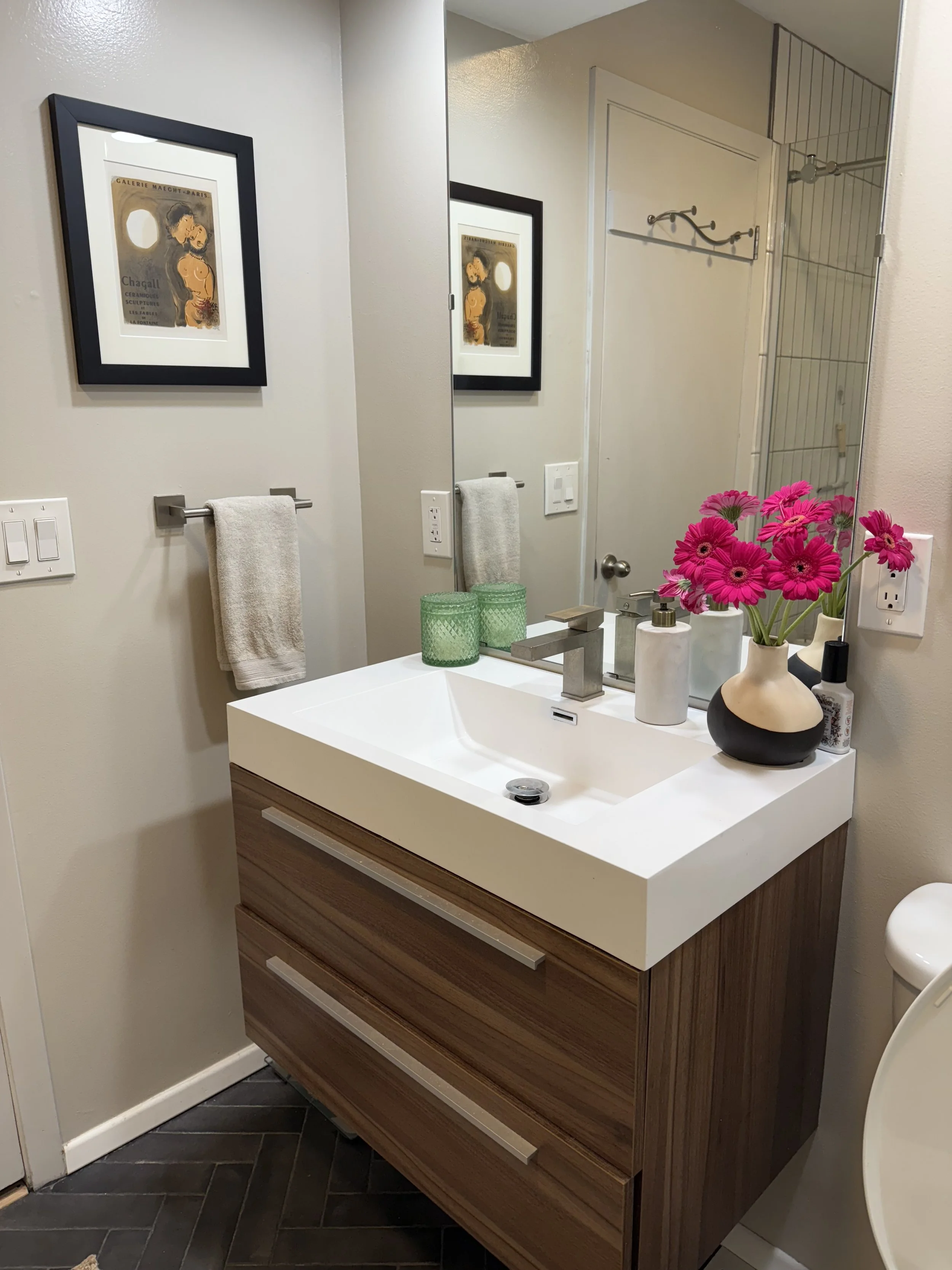 Every design choice was intentional — balancing affordability with enduring style. By mixing high-quality materials with cost-effective solutions, we transformed what was once the least-loved room in the house into a calm, sophisticated sanctuary that feels worlds away from its blue-and-pink beginnings.